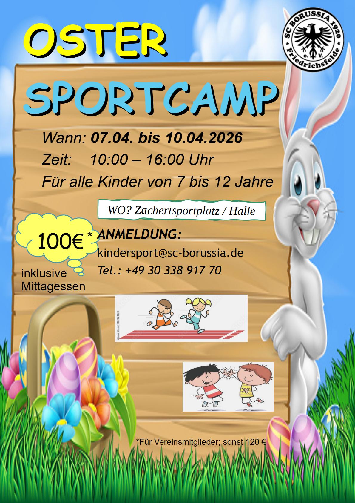 Auch in diesem Jahr veranstaltet der SC Borussia in den Osterferien sein Oster-Camp für alle Kinder, die Lust und Laune für die diversen Sportarten, wie Leichtathletik, Ballsportarten und mehr mitbringen.